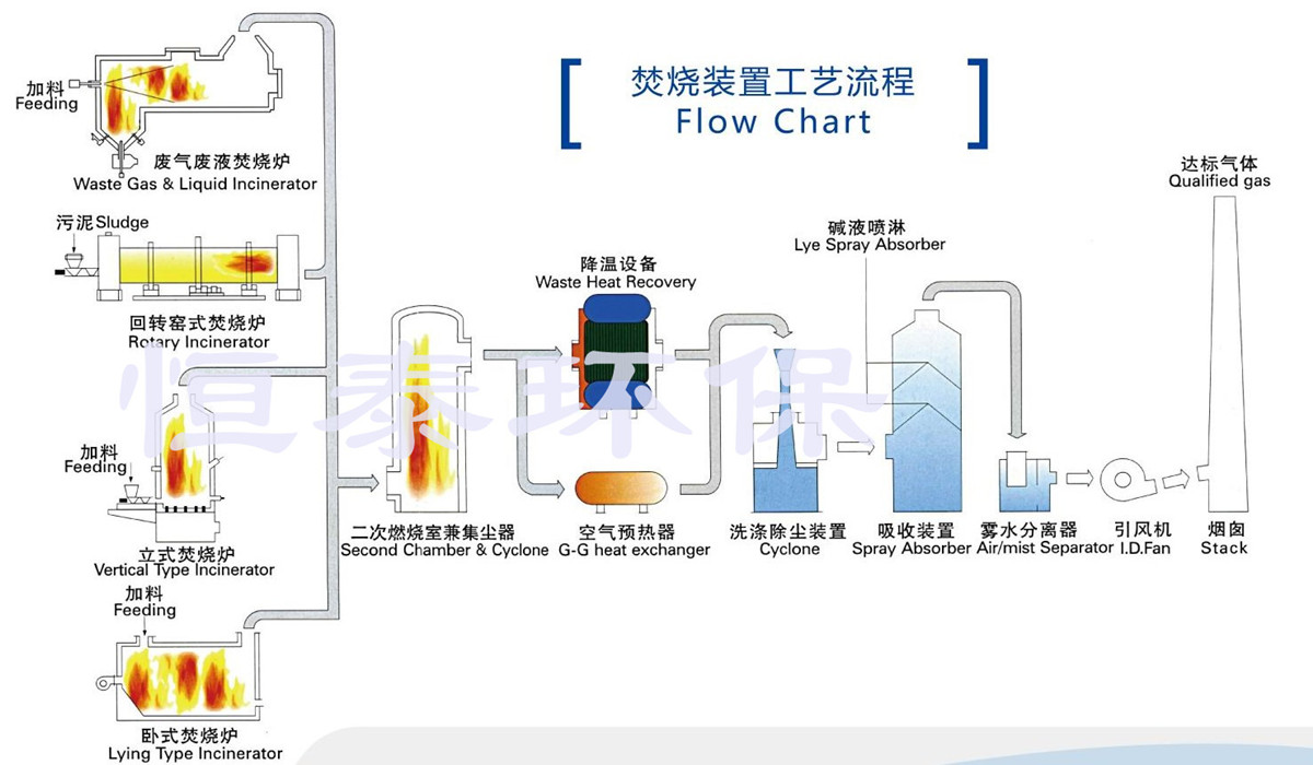 恒泰无烟焚烧炉技术根据废弃物的种类、组成、热值、形态、含水率等因素考虑其经济性做不同之规划与设计,并依燃烧